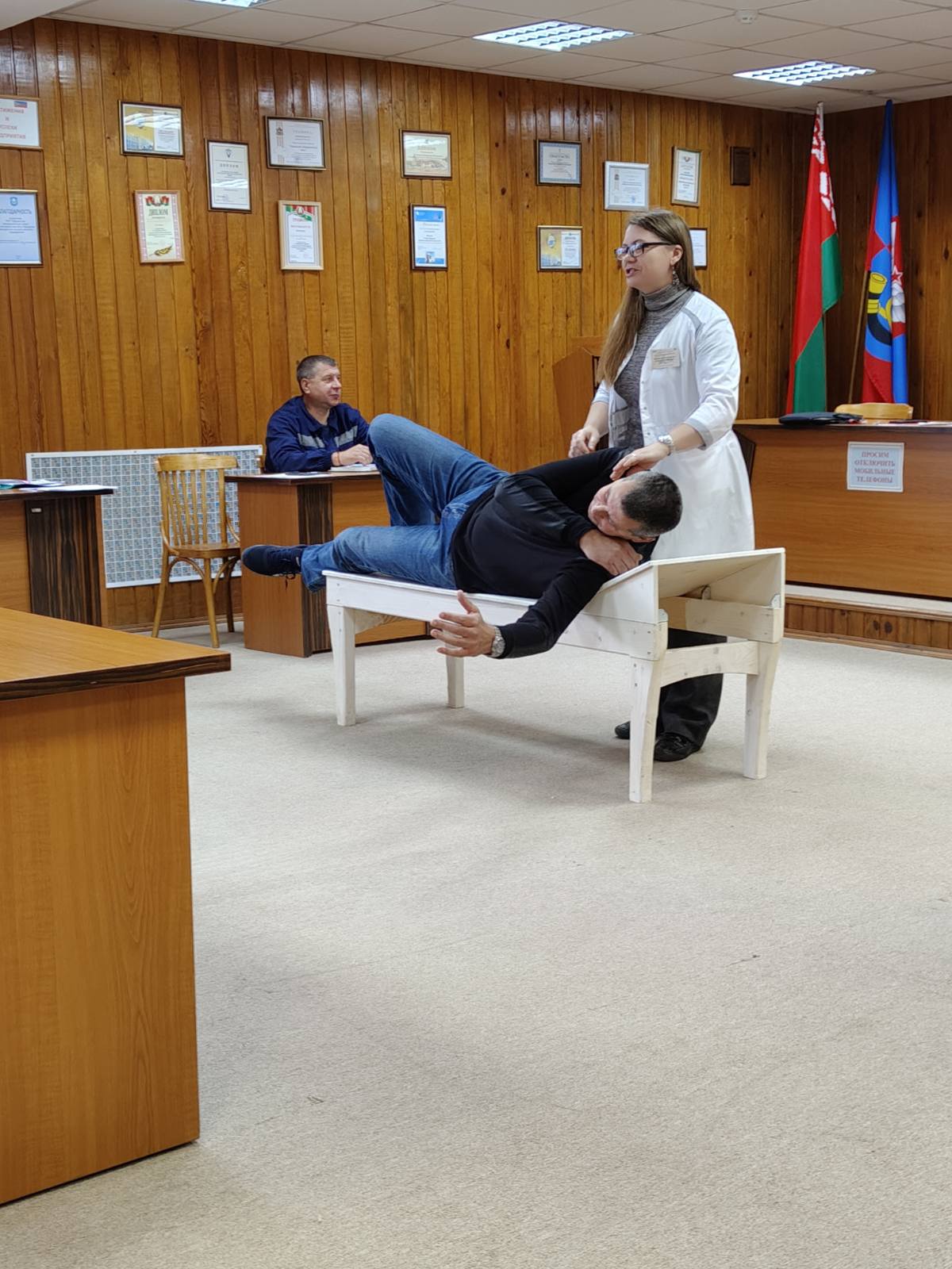 Молодым специалистам провели экскурсию в оборудованное убежище и на склад гражданской обороны, проведены занятия на тематической площадке по оказанию первой помощи с привлечением работников входящих в 3-х звеньевую санитарную дружину предприятия.